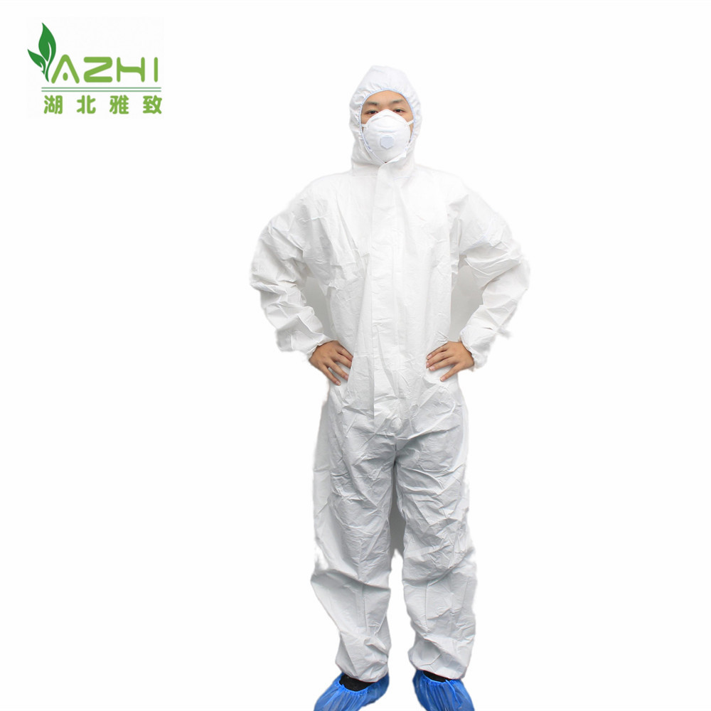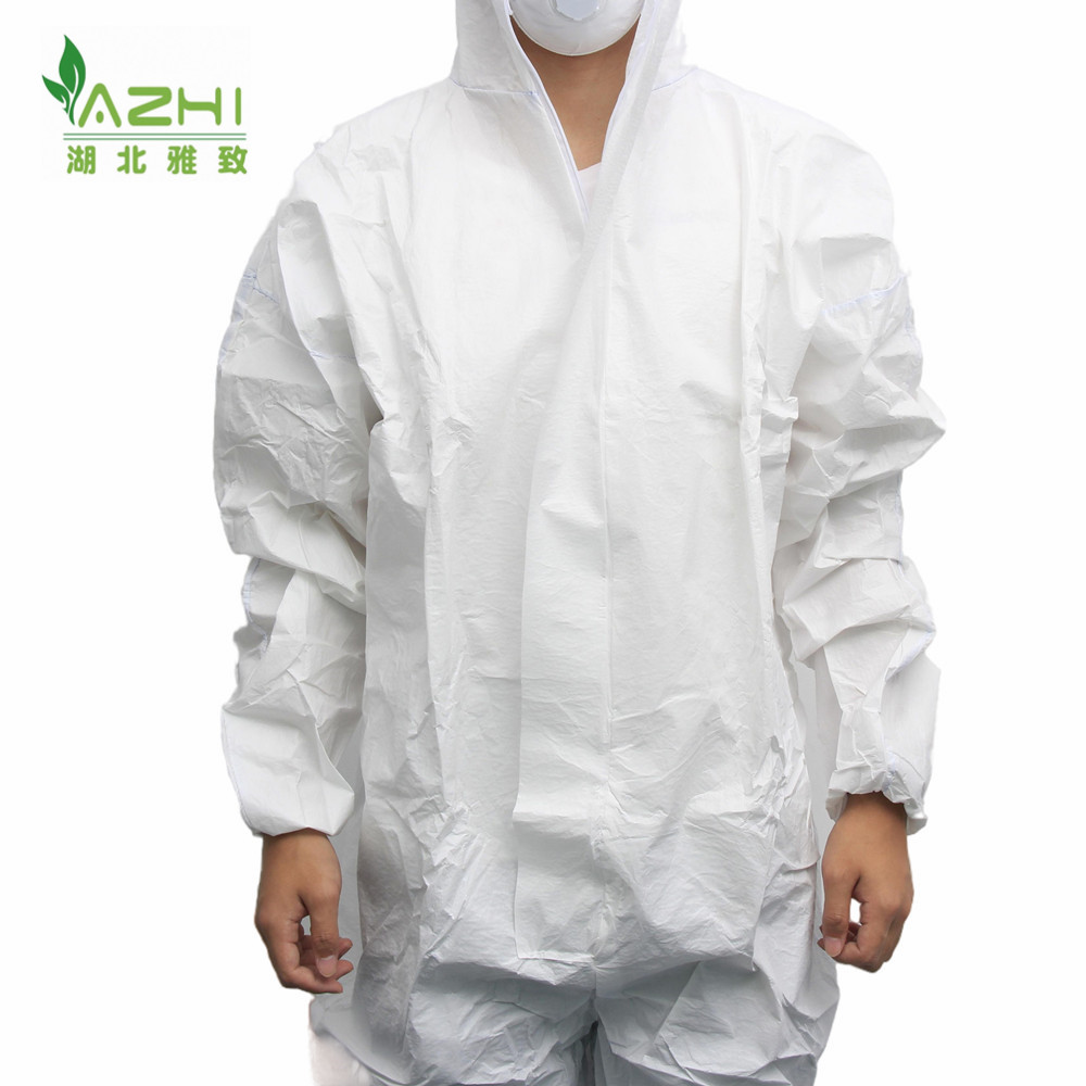 款式:透氣膜防護服,胸前拉鏈,頭上戴帽,腳上無靴套